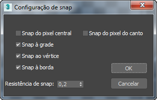 fornece controle para criar, mover, rotacionar e dimensionar subobjetos, fazendo com que o cursor "salte" para uma parte específica da geometria existente ou para outros elementos da cena, quando ativados. Você pode especificar onde você efetuará o snap para utilizar as Configurações de snaps