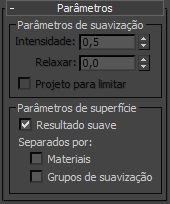 Estas configurações estão disponíveis somente quando o Tipo de MeshSmooth está definido como Clássico ou Saída de Quadrante. Além disso, o Projeto para Limitar a Superfície está disponível somente no modo Clássico.