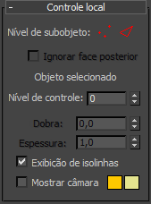 Permite visualizar a malha de controle após uma ou várias iterações e para editar os pontos de subobjetos e arestas naquele nível. Os controles de transformação e a configuração de espessura estão disponíveis para todos os subobjetos em todos os níveis. A configuração da dobra está disponível somente no nível de subobjeto da Aresta.