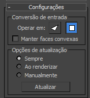 Define as opções de atualização manual ou renderizar-tempo, em situações onde a complexidade do objeto suavizado é muito alto para as atualizações automáticas. Observe que também é possível definir um maior grau de suavidade a ser aplicado somente no momento da renderização, na implementação da Quantidade de Subdivisão.