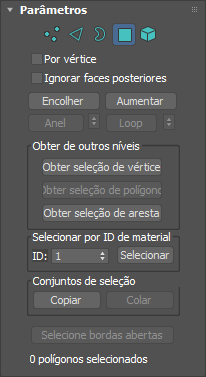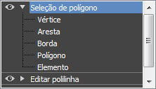 Nota: Quando o tipo de subobjeto atual é Elemento, são apresentadas informações de seleção em Polígonos. Quando o tipo de subobjeto é Borda, são apresentadas informações de seleção em bordas.