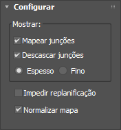A exibição da espessura de configuração se aplica para ambas as junções de pele e mapear as junções: