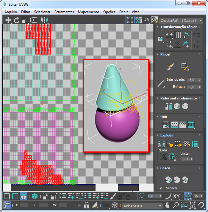 Abrir as junções mapear as junções UVW mostrado no modelo principal na viewport