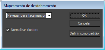O método de Mapeamento de Desdobramento de mapeamento de textura procedural elimina a distorção de textura, mas pode resultar em sobreposição de clusters de coordenadas. A caixa de diálogo Mapeamento de desdobramento permite controlar como as faces serão desdobradas.