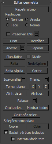 implementação Seleção. Este tópico abrange a implementação Editar polígonos/elementos e as funções de implementação Editar geometria para esses tipos de subobjetos; para outros controles, consulte Polígono editável.