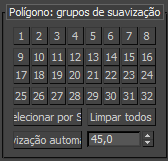 Use estes controles para atribuir polígonos selecionados a diferentes grupos de suavização e selecionar polígonos por grupo de suavização.