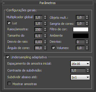 Esses controles podem ajudar você a acelerar o tempo de renderização. Eles reduzem o número de amostras de luz. As configurações ideais para subamostragem variam muito de cena para cena.