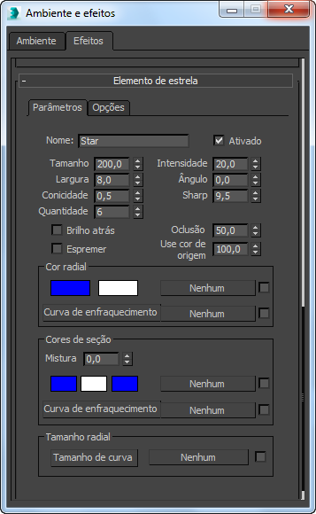 - Especifica o grau de nitidez da estrela. Números mais elevados produzem estrelas nítidas, claras e bem delineadas. Números mais baixos produzem mais um aspecto brilhante secundário. Intervalo=0 a 10.