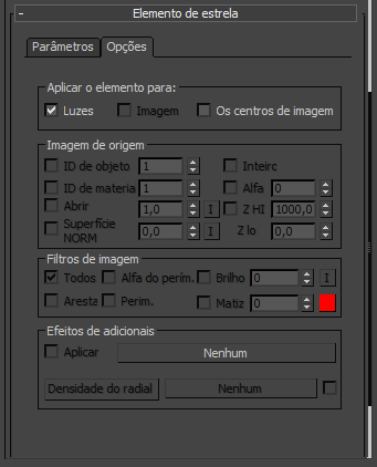 - Especifica o número de raios no efeito de estrela. O padrão é 6. Os raios são espaçados em pontos equidistantes sobre o centro do clarão.