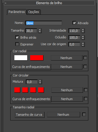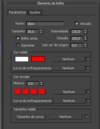 - Mistura as cores definidas em Cor radial e as cores definidas em Cor circular. Se o controle giratório for configurado para 0, somente os valores definidos em Cor radical serão utilizados, equanto se o controle giratório for configurado para 100, somente os valores definidos para Cor circular serão utilizados. Qualquer valor entre 0 e 100 faz uma mistura entre os dois valores.