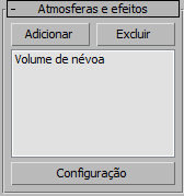 implementação Atmosferas e efeitos, clique em Adicionar. Isto exibe a caixa de diálogo Adicionar atmosfera. Isto cria uma duplicata atmosfera de aparelhos. Suas configurações são inicialmente idêntica a atmosfera escolhido. É possível ajustá-las por meio de Configuração.
