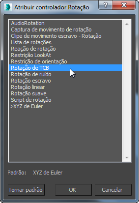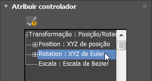 - Na janela atribuir controlador, clique para destacar a rotação: item Euler XYZ.