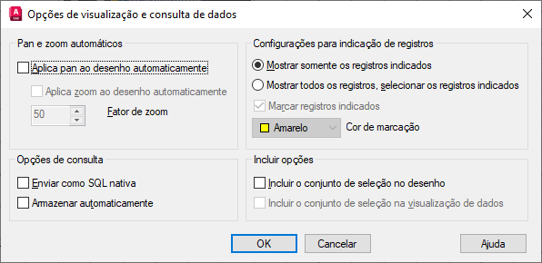 Controla como os objetos vinculados serão exibidos no desenho atual quando os registros correspondentes são selecionados na janela Visualizar dados.