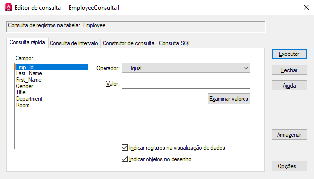 Abre a caixa de diálogo Visualização de dados e opções de consulta.