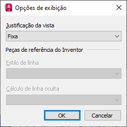 Esta caixa de diálogo permite especificar como ancorar a geometria da vista e como exibir as peças de referência do Inventor.