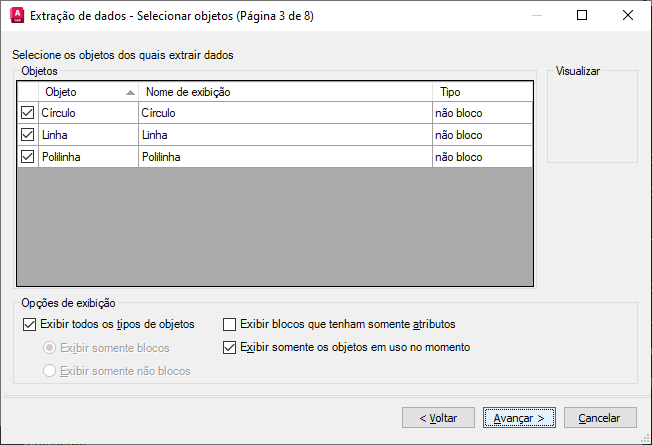 Torna o botão Selecionar objetos no desenho atual disponível para que você possa selecionar objetos para a extração de dados.