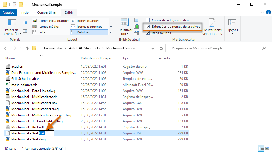 As etapas indicadas a seguir explicam como alterar a extensão de um arquivo BAK ou SV$ no Windows: