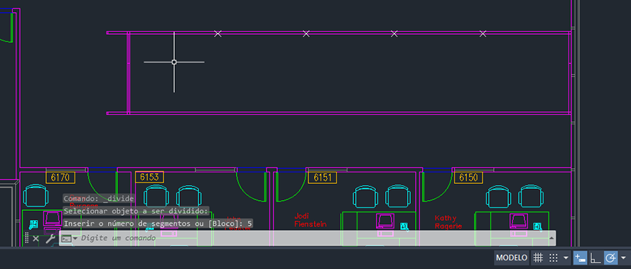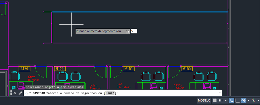 | DIVIDIR | Cria objetos ou blocos espaçados por igual ao longo do comprimento ou perímetro de um objeto. |
