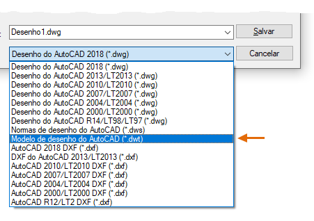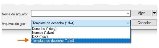 É possível salvar qualquer arquivo de desenho (*.dwg) como um arquivo de template de desenho (.dwt). Para criar um novo arquivo de template de desenho com base em um existente, abra o arquivo de template de desenho existente, modifique-o e, em seguida, salve-o novamente com um nome de arquivo diferente.