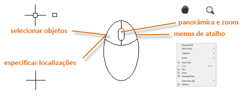 A maioria dos usuários utiliza um mouse como seu dispositivo apontador, mas outros dispositivos têm controles equivalentes.