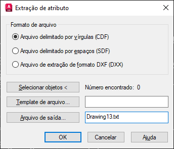 Gera um arquivo contendo um registro para cada referência de bloco do desenho que tenha pelo menos um identificador de atributo correspondente no template de arquivo. Os campos de cada registro possuem largura fixa; portanto, separadores de campos ou delimitadores de sequência de caracteres não são apropriados.