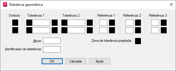 Depois que você selecionar os símbolos de características geométricas, a caixa de diálogo Geometric Tolerance é fechada e o seguinte prompt é exibido: