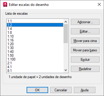 Controla a lista de escalas disponíveis para viewports de layout, layouts de página e plotagem