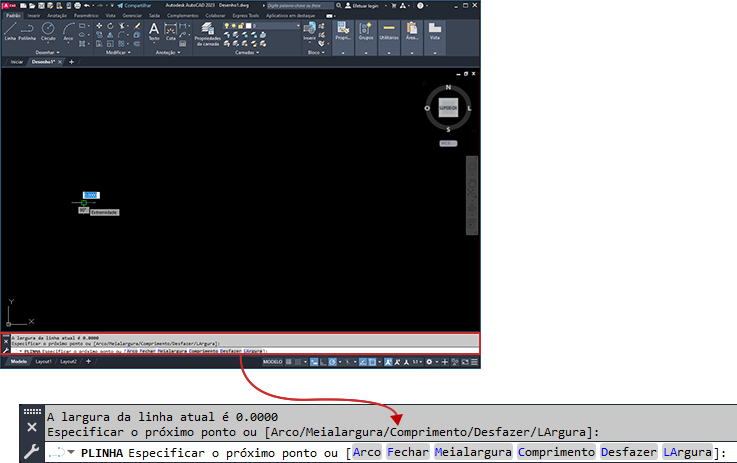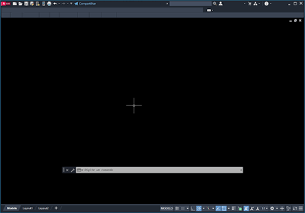 A janela de comandos encaixada tem a mesma largura da janela do aplicativo. Ela é exibida em uma posição fixa acima ou abaixo da área de desenho.