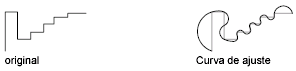 Utiliza os vértices da polilinha selecionada como pontos de controle ou molduras de uma curva aproximando-se de uma B-spline. Essa curva, chamada polilinha de ajuste à spline, passa através do primeiro e último pontos de controle a menos que a polilinha original seja fechada. A curva é atraída em direção aos outros pontos mas não passa necessariamente por eles. Quanto mais pontos de controle você especificar em um determinado ponto da moldura, maior atração eles exercerão sobre a curva. É possível gerar polilinhas de ajuste à spline quadráticas e cúbicas.
