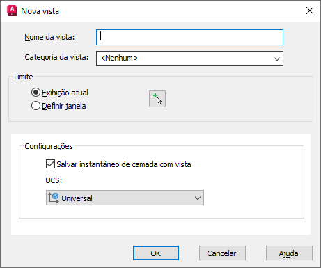 Salva uma nova vista nomeada a partir do que é exibido na viewport atual ou definindo-se uma janela retangular.