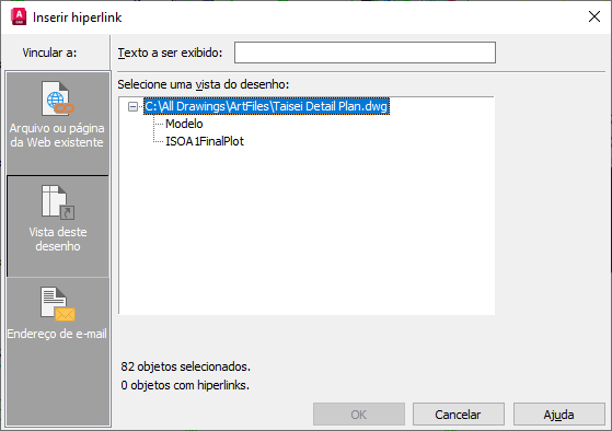 Abre a caixa de diálogo Selecionar local no documento, na qual é possível selecionar uma localização nomeada do desenho para vinculação.