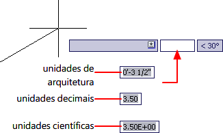 Você pode escolher entre diversas convenções comuns para representar o formato e a precisão das distâncias e das coordenadas lineares exibidas na paleta Propriedades, na entrada dinâmica, na barra de status e em outros lugares.