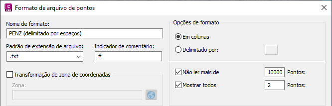 3. Na caixa de diálogo Formato de arquivo de pontos (imagem 1), defina as opções na parte inferior direita para limitar o número total de pontos e definir uma taxa de amostragem.
