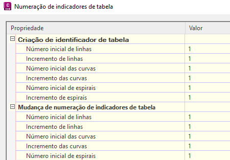 Figura 18: Opções de numeração do identificador da tabela