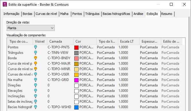 O estilo Declividade final é configurado para exibir o desenho para fins de apresentação ou para as últimas fases de um projeto.