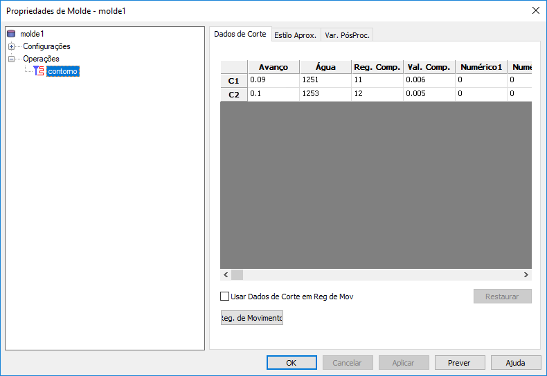 Val. Comp. é basicamente o raio do fio mais o offset do fio. Val. Comp. também deve estar presente na documentação da sua máquina.