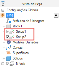 Setup1 é um Setup de torneamento e Setup2 um Setup de fresamento.