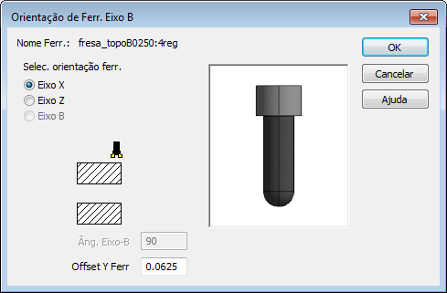 Para exibir o diálogo Orientação de Ferr. Eixo B: