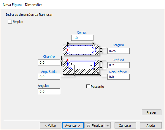 - Selecione Ranhura e clique em Avançar para exibir a página Nova Figura - Dimensões.