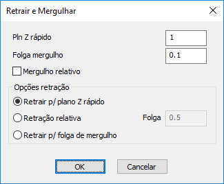 Para exibir o diálogo Retrair e Mergulhar, clique no botão Retrair/Mergulho na guia Fresamento de uma figura de fresamento de superfície.