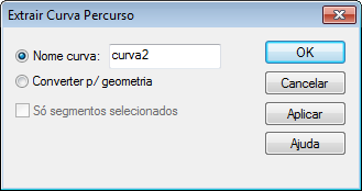 Para exibir o diálogo Extrair Curva Percurso, clique em Exportar percurso como curva