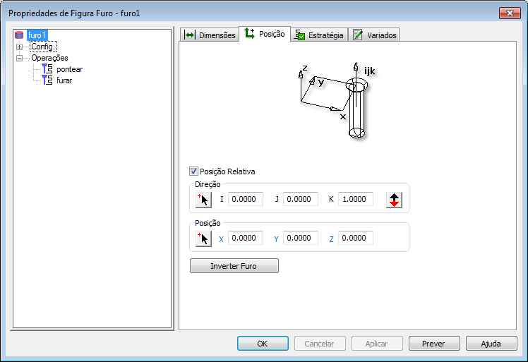 Posição — Insira as coordenadas do topo da figura de Furo, ou clique em Selecionar posição
