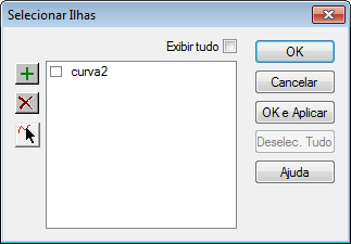 Para exibir o diálogo Selecionar Ilhas, clique em Ilhas na guia Dimensões do diálogo Propriedades da Figura de Fresamento.