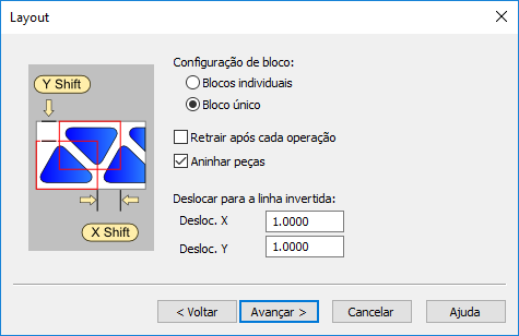 Você pode configurar as seguintes opções de nesting no diálogo Layout: