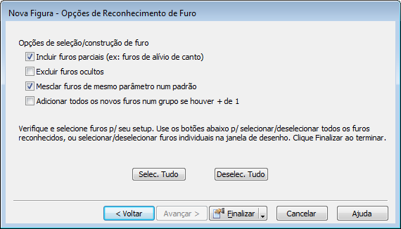 • Caso deseje manter todos os furos reconhecidos, clique em Selecionar tudo e então em Finalizar.