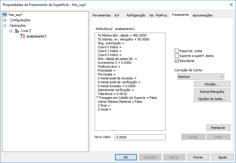Z final — Insira a distância ao longo do eixo Z abaixo da qual a operação não fresa.