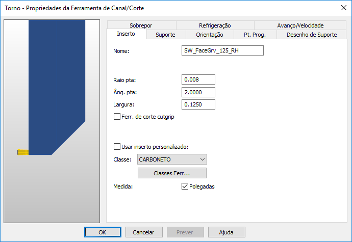 Medida — Indica as unidades utilizadas para reportar as dimensões da ferramenta. Selecione Polegadas para unidades em polegadas ou desfaça a seleção para unidades em milímetros.