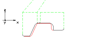 Quando Mergulho relativo não está selecionado, a ferramenta mergulha para a Folga de mergulho como um valor absoluto. Isso pode fazer com que a ferramenta avance por uma distância desnecessária para peças não planas. Por exemplo, nesse percurso de superfície somente ascendente, a ferramenta segue em movimento rápido para um valor Z definido e então avança para a peça em cada extremidade: