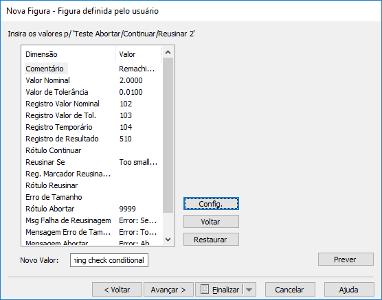 Valor Nominal — Insira a medição sendo testada, por exemplo o diâmetro de uma figura de furo.