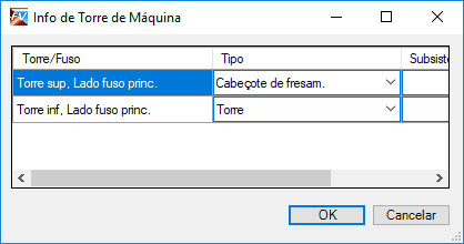Utilize o diálogo Info de Torre de Máquina para especificar as opções de torre. Esse diálogo somente está disponível para peças multi-torre.